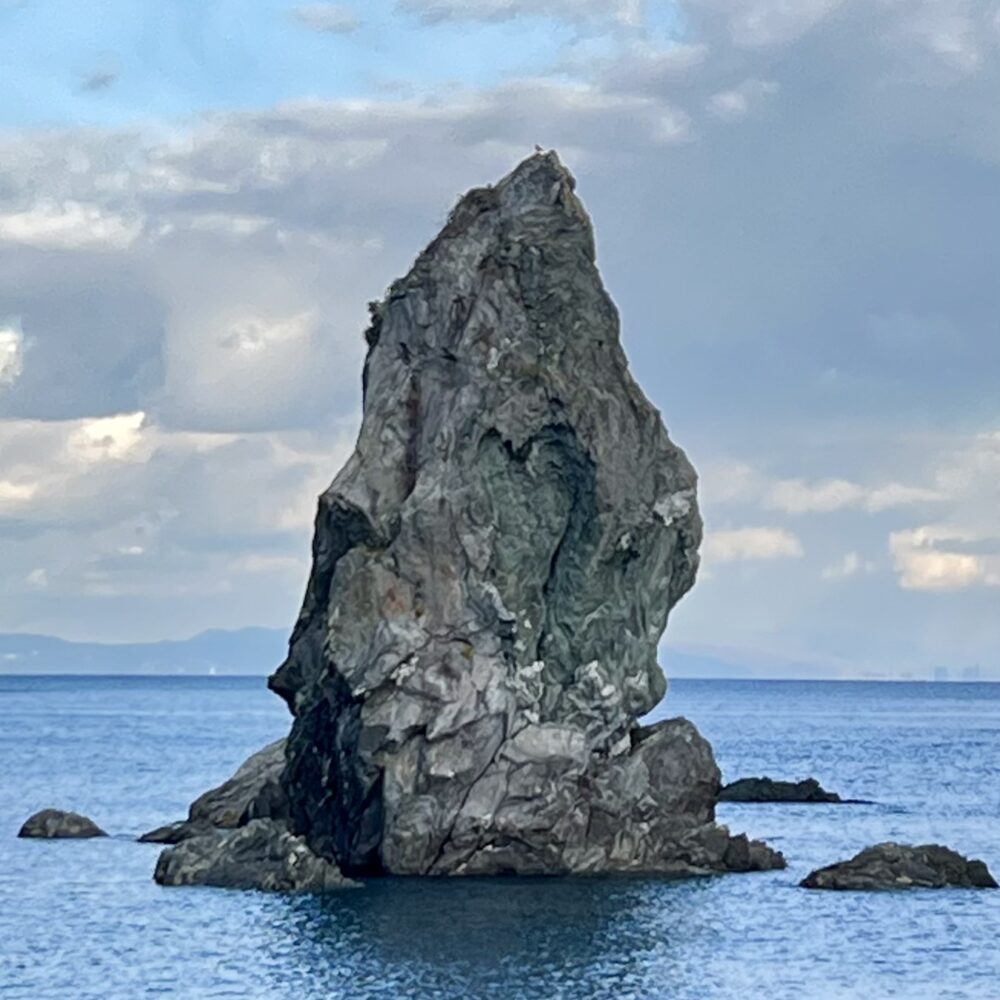 兵庫県南あわじ市・沼島の沖にそびえ立つこの奇岩は、国生み神話の舞台と伝わる、神秘的な存在です。