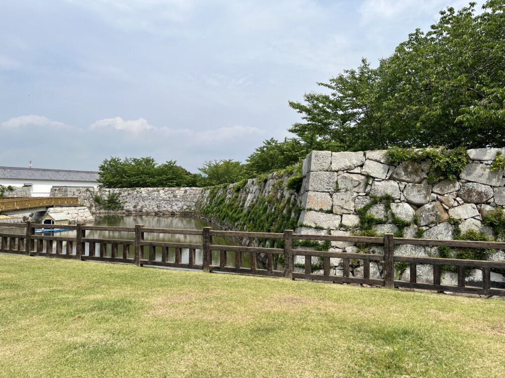外堀沿いを歩くと、水面に映る石垣が美しく、城郭の雰囲気を満喫できます。